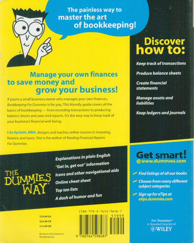 Bookkeeping For Dummies by Lita Epstein Accurate and complete bookkeeping is crucial to any business...