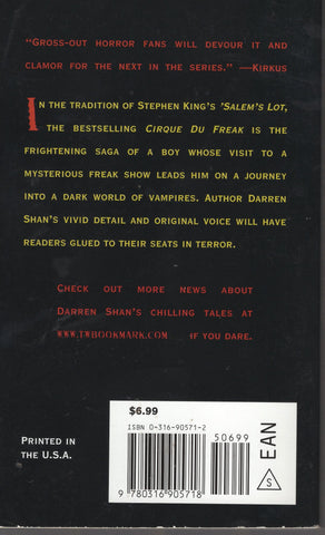 {"id":6185053585585,"title":"Cirque Du Freak A Living Nightmare by Darren Smith NY Times Bestselling Author","handle":"cirque-du-freak-a-living-nightmare-by-new-york-times-bestselling-author-darren-shan","description":"\u003ch3 class=\"a-size-large a-spacing-none\" style=\"text-align: center;\"\u003e\u003cstrong\u003eCirque Du Freak A Living Nightmare\u003c\/strong\u003e\u003c\/h3\u003e\r\n\u003ch3 style=\"text-align: center;\"\u003e\u003cstrong\u003eBy Darren Smith New York Times Bestselling Author\u003c\/strong\u003e\u003c\/h3\u003e\r\n\u003cp\u003eFrom the Master of Horror comes the first gripping book in the twelve book New York Times bestselling Saga of Darren Shan. Start the tale from the beginning in the book that inspired the feature film The Vampire's Assistant and petrified devoted fans worldwide.\u003cbr\u003e\u003cbr\u003eA young boy named Darren Shan and his best friend, Steve, get tickets to the Cirque Du Freak, a wonderfully gothic freak show featuring weird, frightening half human\/half animals who interact terrifyingly with the audience. In the midst of the excitement, true terror raises its head when Steve recognizes that one of the performers-- Mr. Crepsley-- is a vampire! \u003cbr\u003e\u003cbr\u003eStever remains after the show finishes to confront the vampire-- but his motives are surprising! In the shadows of a crumbling theater, a horrified Darren eavesdrops on his friend and the vampire, and is witness to a monstrous, disturbing plea. As if by destiny, Darren is pulled to Mr. Crepsley and what follows is his horrifying descent into the dark and bloody world of vampires. \u003cbr\u003e\u003cbr\u003eThis is the beginning of Darren's story.\u003c\/p\u003e\r\n\u003ch3 class=\"a-size-large a-spacing-none\"\u003eAbout the Author\u003c\/h3\u003e\r\n\u003cdiv class=\"productDescriptionWrapper\" dir=\"auto\"\u003eDarren Shan is the New York Times bestselling author of Cirque Du Freak and The Demonata, whose novels have sold over 15 million copies worldwide. Darren lives in Ireland, where he writes and collects art, comics, and film.\u003c\/div\u003e\r\n\u003cdiv class=\"productDescriptionWrapper\" dir=\"auto\"\u003e\u003c\/div\u003e\r\n\u003cdiv class=\"productDescriptionWrapper\" dir=\"auto\"\u003e\u003c\/div\u003e\r\n\u003cdiv class=\"productDescriptionWrapper\" dir=\"auto\"\u003e\r\n\u003cul\u003e\r\n\u003cli\u003e\r\n\u003cstrong\u003eSeries:\u003c\/strong\u003e Cirque Du Freak: The Saga of Darren Shan (Book 1)\u003c\/li\u003e\r\n\u003cli\u003e\r\n\u003cstrong\u003eMass Market Paperback:\u003c\/strong\u003e 272 pages\u003c\/li\u003e\r\n\u003cli\u003e\r\n\u003cstrong\u003ePublisher:\u003c\/strong\u003e Little, Brown Books for Young Readers (April 1, 2004)\u003c\/li\u003e\r\n\u003cli\u003e\r\n\u003cstrong\u003eLanguage:\u003c\/strong\u003e English\u003c\/li\u003e\r\n\u003cli\u003e\r\n\u003cstrong\u003eISBN-10:\u003c\/strong\u003e 0316905712\u003c\/li\u003e\r\n\u003cli\u003e\r\n\u003cstrong\u003eISBN-13:\u003c\/strong\u003e 978-0316905718\u003c\/li\u003e\r\n\u003cli\u003e\r\n\u003cstrong\u003eProduct Dimensions: \u003c\/strong\u003e4.1 x 0.8 x 6.8 inches\u003c\/li\u003e\r\n\u003cli\u003e\r\n\u003cstrong\u003eShipping Weight:\u003c\/strong\u003e 5 ounces\u003c\/li\u003e\r\n\u003c\/ul\u003e\r\n\u003cp\u003e\u003cstrong\u003eBook Condition: Used, Very good:\u003c\/strong\u003e The book does not look new and has been read but is in a very good condition. There is no obvious damage to the cover. Very minimal wear and tear. As seen in pictures. \u003c\/p\u003e\r\n\u003c\/div\u003e\r\n\u003cdiv class=\"productDescriptionWrapper\" dir=\"auto\"\u003e\u003c\/div\u003e\r\n\u003cdiv class=\"productDescriptionWrapper\" dir=\"auto\"\u003e\u003c\/div\u003e\r\n\u003cdiv class=\"productDescriptionWrapper\" dir=\"auto\"\u003e\u003c\/div\u003e\r\n\u003cdiv class=\"productDescriptionWrapper\" dir=\"auto\"\u003e\u003c\/div\u003e","published_at":"2021-01-07T15:43:03-05:00","created_at":"2021-01-07T15:43:05-05:00","vendor":"Montecinostore","type":"Books:Fiction \u0026 Literature","tags":["Condition_Very Good","Format_Paperback","Language_English"],"price":9265,"price_min":9265,"price_max":9265,"available":true,"price_varies":false,"compare_at_price":null,"compare_at_price_min":0,"compare_at_price_max":0,"compare_at_price_varies":false,"variants":[{"id":37871281045681,"title":"Default Title","option1":"Default Title","option2":null,"option3":null,"sku":"SB12-053","requires_shipping":true,"taxable":true,"featured_image":null,"available":true,"name":"Cirque Du Freak A Living Nightmare by Darren Smith NY Times Bestselling Author","public_title":null,"options":["Default Title"],"price":9265,"weight":142,"compare_at_price":null,"inventory_management":"shopify","barcode":"978-0316905718","requires_selling_plan":false,"selling_plan_allocations":[]}],"images":["\/\/marvelous-memories.com\/cdn\/shop\/products\/Books-B12-053.jpg?v=1610052186","\/\/marvelous-memories.com\/cdn\/shop\/products\/Books-B12-053a.jpg?v=1610052186"],"featured_image":"\/\/marvelous-memories.com\/cdn\/shop\/products\/Books-B12-053.jpg?v=1610052186","options":["Title"],"media":[{"alt":null,"id":15379374342321,"position":1,"preview_image":{"aspect_ratio":0.601,"height":2045,"width":1230,"src":"\/\/marvelous-memories.com\/cdn\/shop\/products\/Books-B12-053.jpg?v=1610052186"},"aspect_ratio":0.601,"height":2045,"media_type":"image","src":"\/\/marvelous-memories.com\/cdn\/shop\/products\/Books-B12-053.jpg?v=1610052186","width":1230},{"alt":null,"id":15379374375089,"position":2,"preview_image":{"aspect_ratio":0.607,"height":2045,"width":1242,"src":"\/\/marvelous-memories.com\/cdn\/shop\/products\/Books-B12-053a.jpg?v=1610052186"},"aspect_ratio":0.607,"height":2045,"media_type":"image","src":"\/\/marvelous-memories.com\/cdn\/shop\/products\/Books-B12-053a.jpg?v=1610052186","width":1242}],"requires_selling_plan":false,"selling_plan_groups":[],"content":"\u003ch3 class=\"a-size-large a-spacing-none\" style=\"text-align: center;\"\u003e\u003
