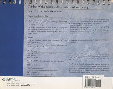 Children With Special Needs in Early Childhood Settings by Carol L P, Lola Gorrill, Bev...