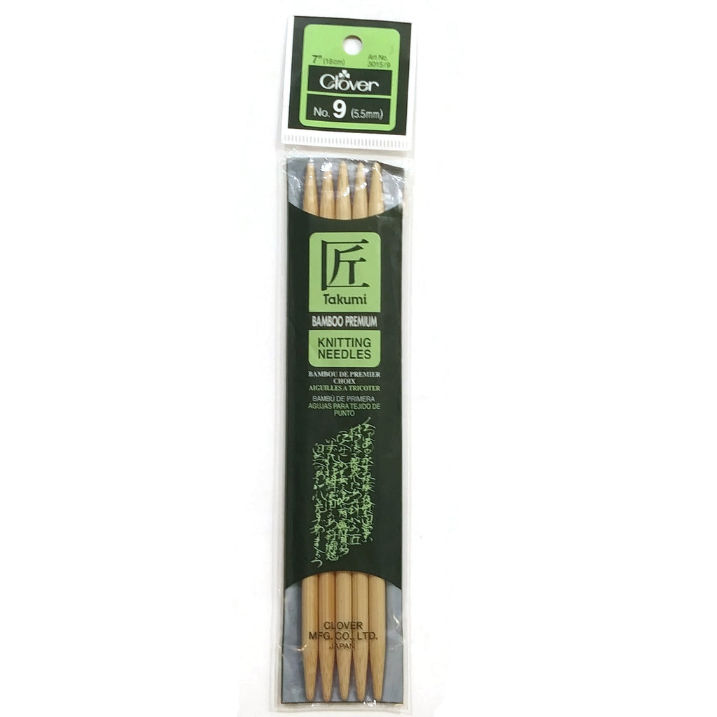7" Clover Takumi 5 Pieces Knitting Needles No.9 Bamboo Premium Japan