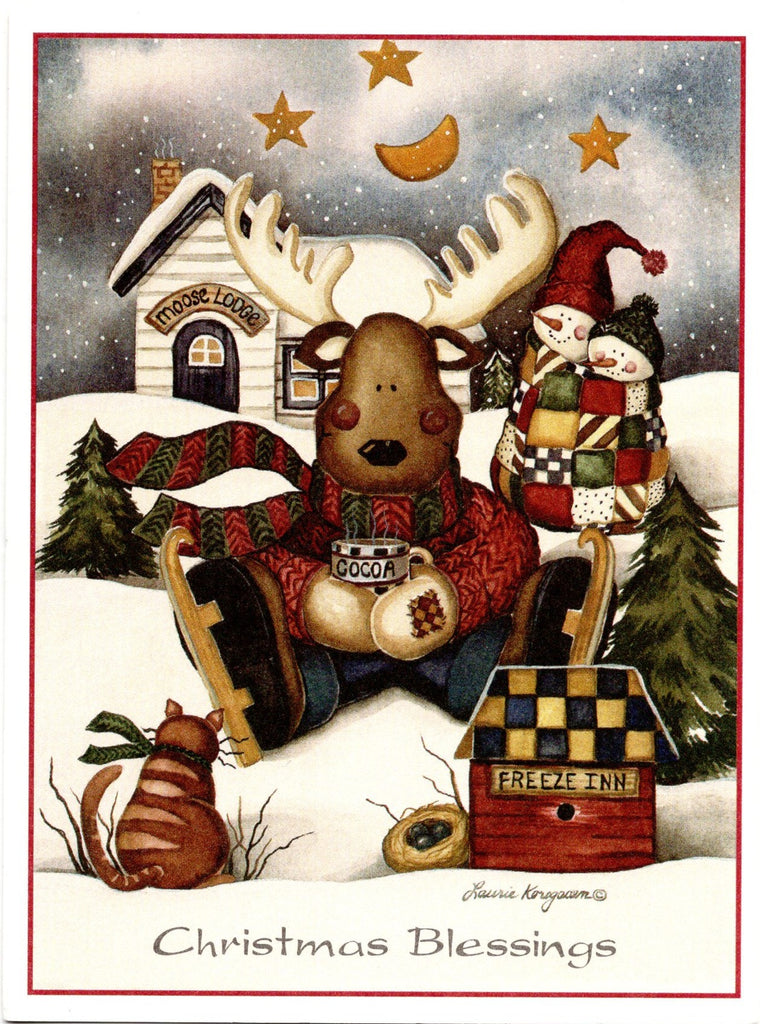 "Cocoa Break" Snow men & Reindeer Christmas Holiday Blessings Seasons Greeting