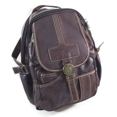 Xiangyu Backpack Leather Travel Bag Handbag Brown Unisex