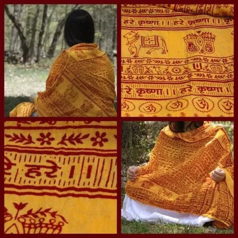 Yellow Meditation Yoga Prayer Shawl Wrap Maha Mantra Hare Krishna 87"x42" Large