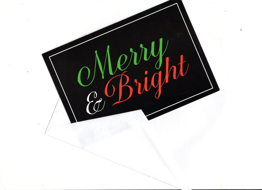 Merry & Bright Christmas Vintage Greeting Card Holiday Seasons New Year Wishes