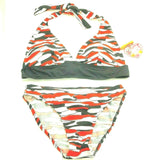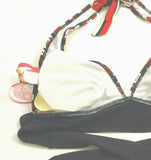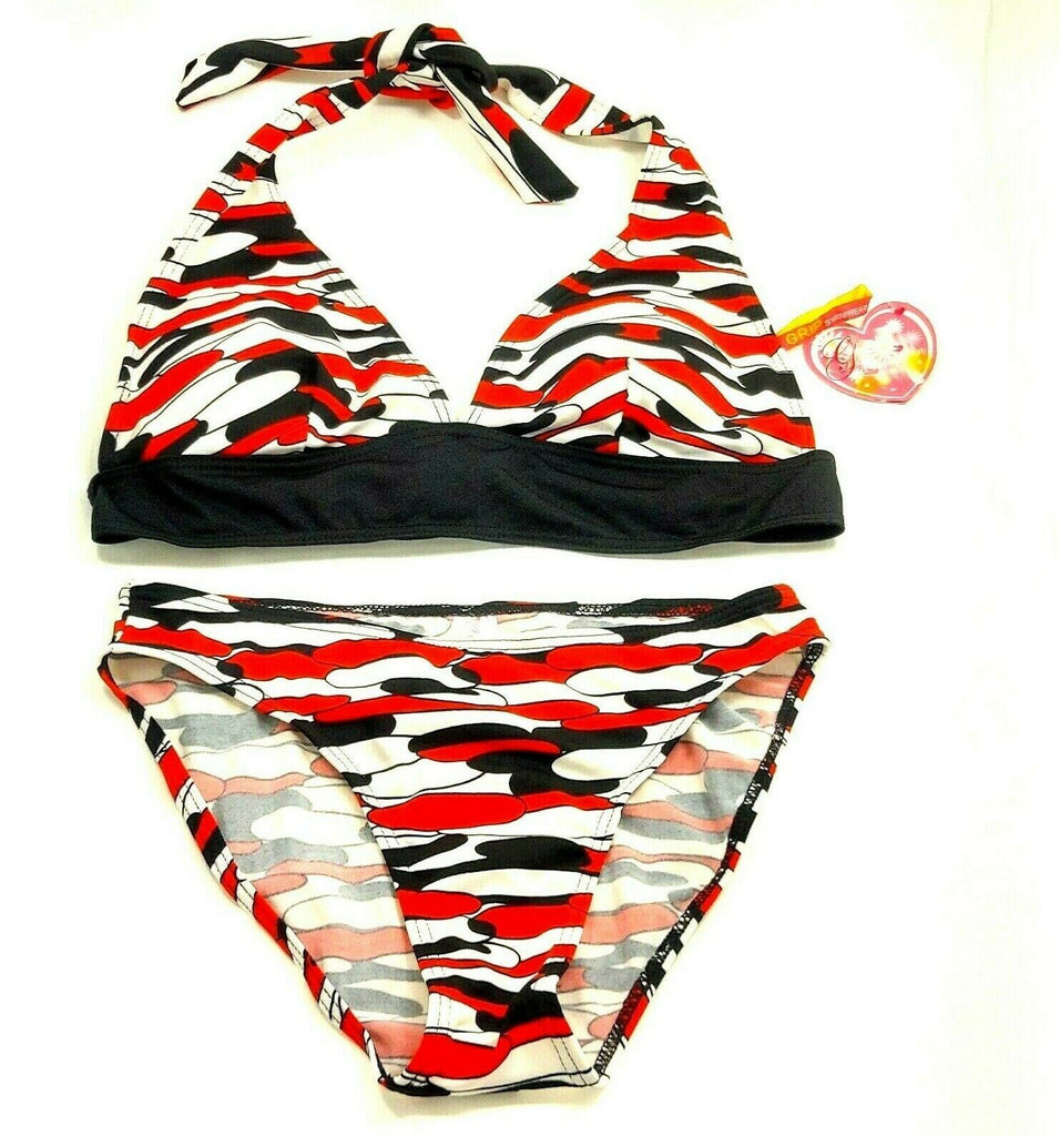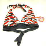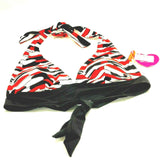 Women Grip Swimwear Bikini 2 Pc. Halter Top High Neck Tying Swimsuit Black/Red