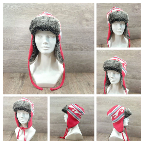 Earflaps Winter Hat Ear Cover Unisex Warm Fur Lining Beanie Aviator Cap Gray/Red
