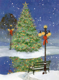 Decorated Christmas Tree by a Frozen Lake Christmas Art Greeting Card Vintage