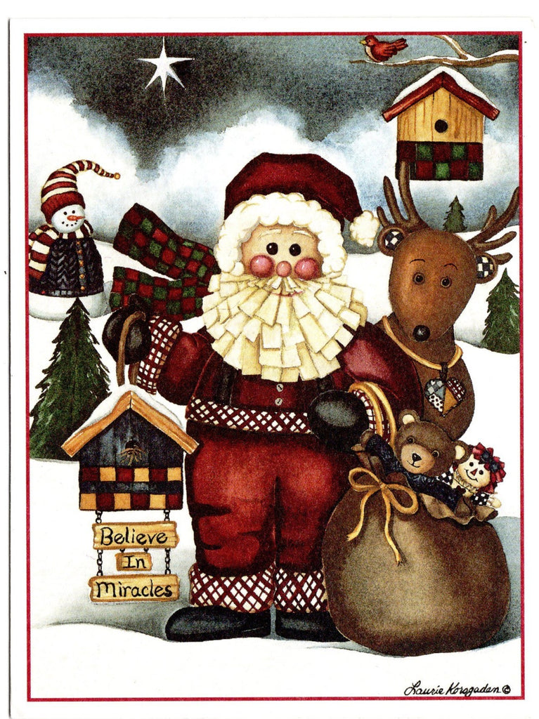 Santa Claus Reindeer and Christmas Gifts Holiday Seasons Greeting Card
