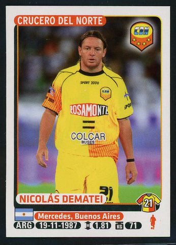 Nicolas Dematei Crucero del Norte Argentine #127 Soccer Sport Card Panini
