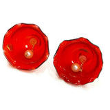Red Glass Bell North &  South Carolina 2 Ruby Bells Set Gift Souvenir Memento Vintage Flower Design Collection