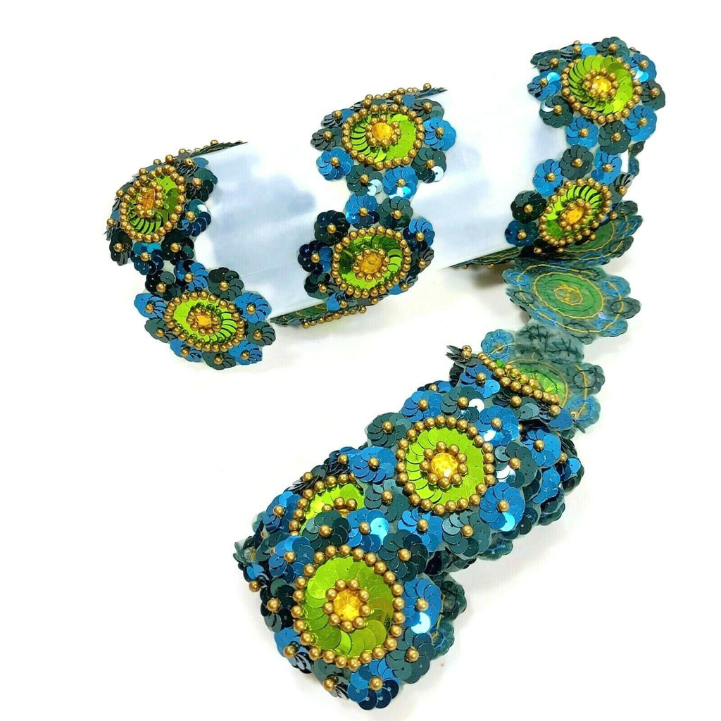 Sequin Grosgrain Ribbon 1 Yard 0.5" Green Sewing Art Craft Handcrafts Gifts Projects Width - 0.5"...
