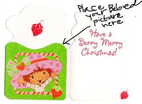 Strawberry Shortcake Berry Merry Christmas Picture Frame Holidays Seasons Greeting Card Vintage Card size - 7.25 x...