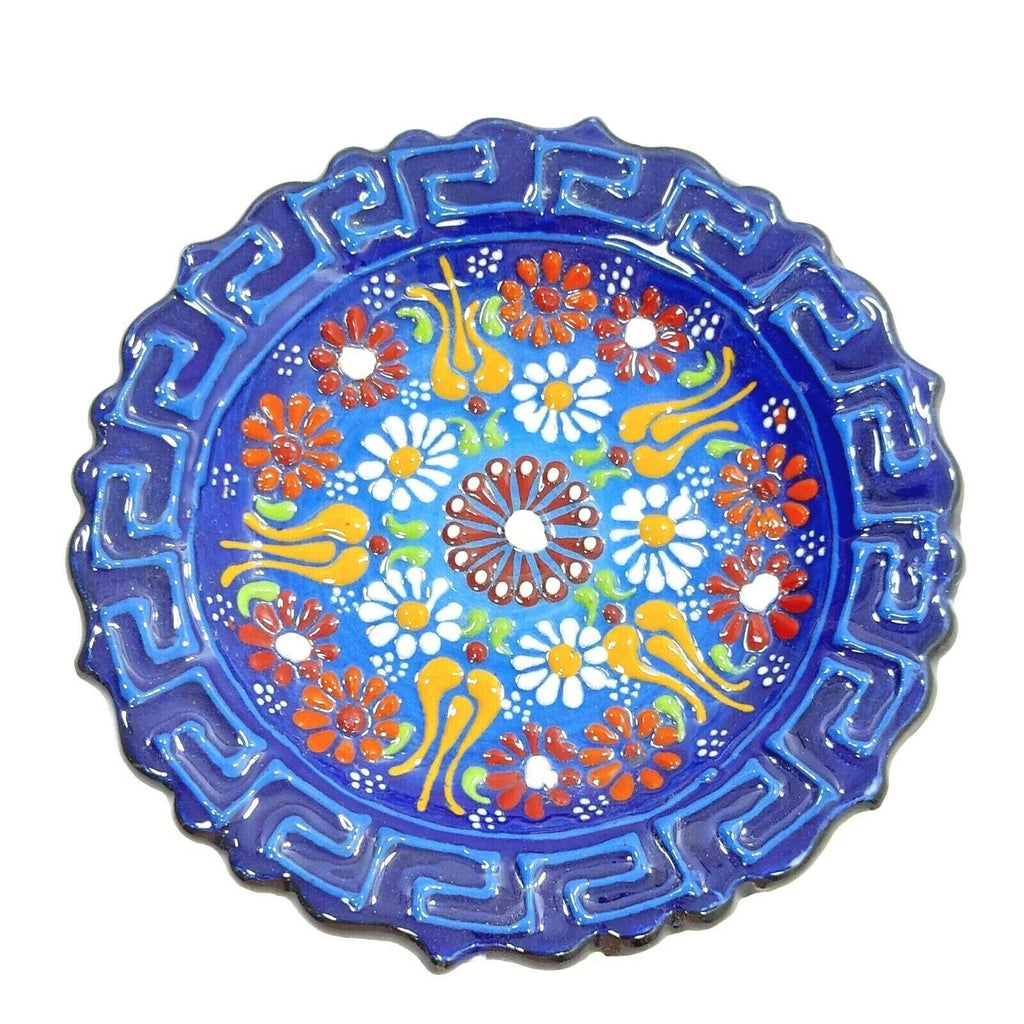 Ceramic Round 5" Blue Plate Handcrafted Ornament Blue Floral Pattern Handmade Home Decoration