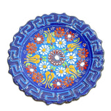 Ceramic Round Plate Handcrafted Ornament Blue Floral Pattern Handmade Home Décor