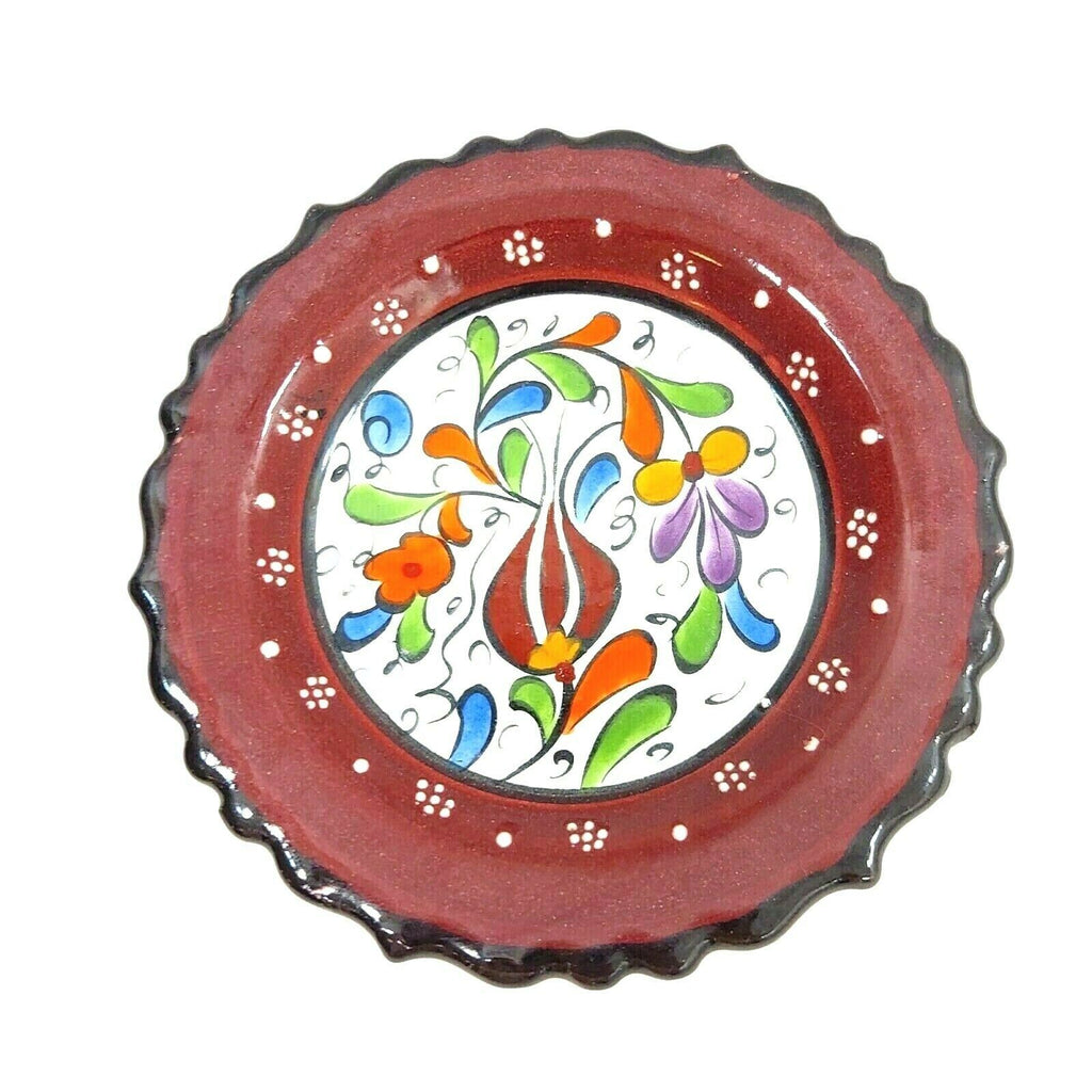 Ceramic Round 5" Red Plate Handcrafted Ornament Blue Floral Pattern Handmade Home Decoration Hight -...