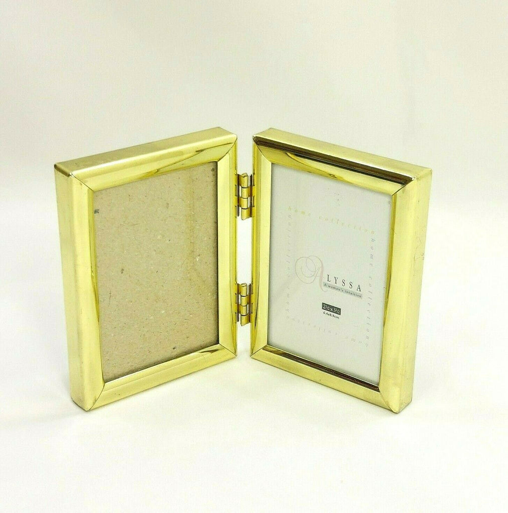 Hinged Double Picture Photo Frame in Gold Folding Displays 2.5x3.5 Tabletop OR Wall Hang