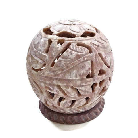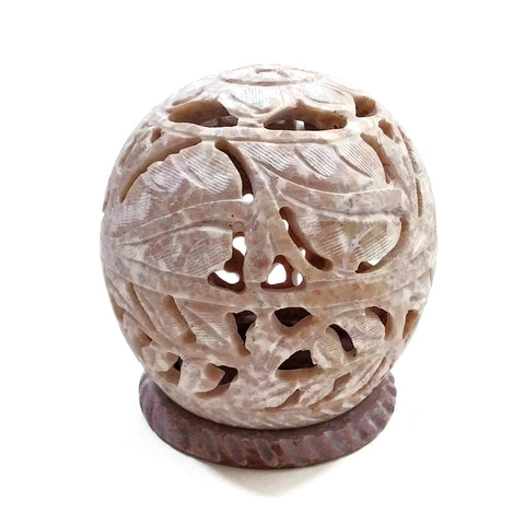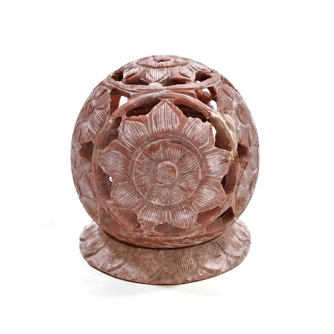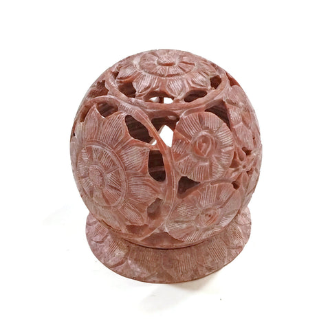 Burner for Candle Holder and Cones - Soapstone Carved T-Lite Ball - Flowers 3 inches Candle...