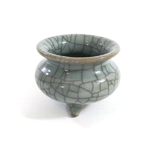 Small Longquan Celadon Glaze Porcelain Tripod Crackle Incense Sage Burner 2.25" High - 2.25" Width...