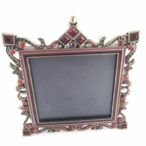 Vintage Ornate Photo Frame Metal W/Red Stones 3x3 Table Top Our delicate ornate photo frame...