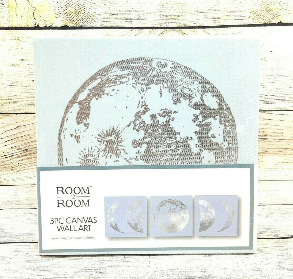 Half Moon and Moon 3PC Canvas Art Wall Home Décor Set of 3 Moon Print Modern 8x8