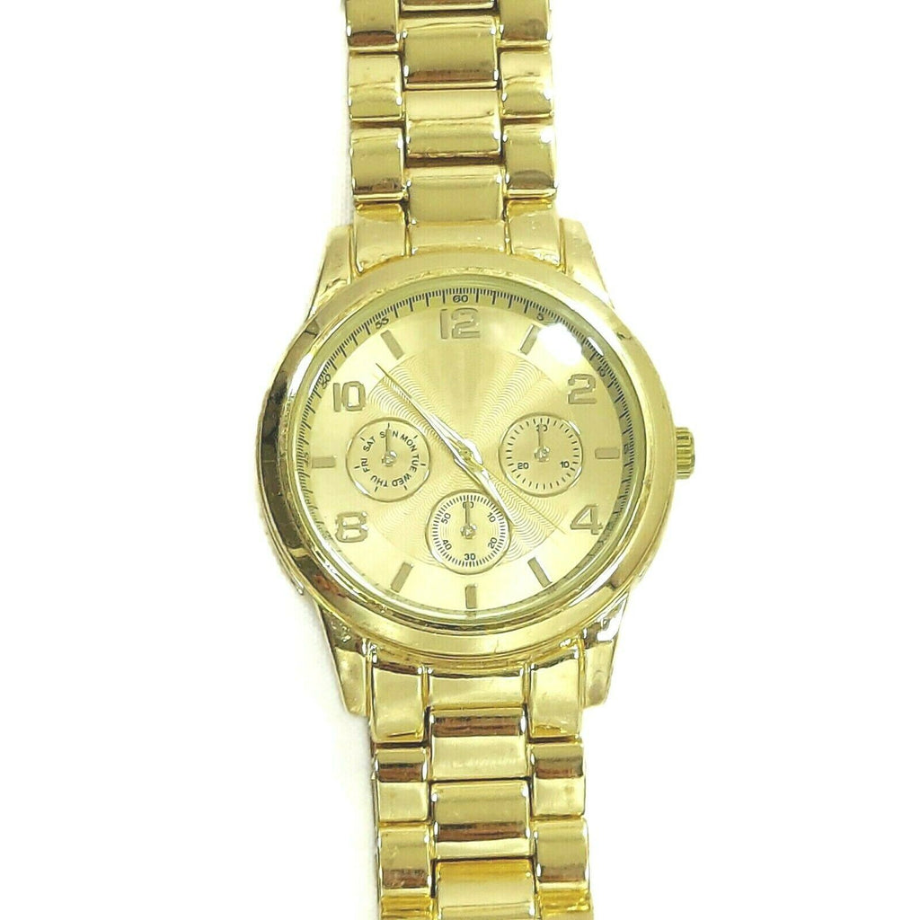 Unisex Gold Tone Color Bracelet Jewelry Wrist Watch