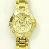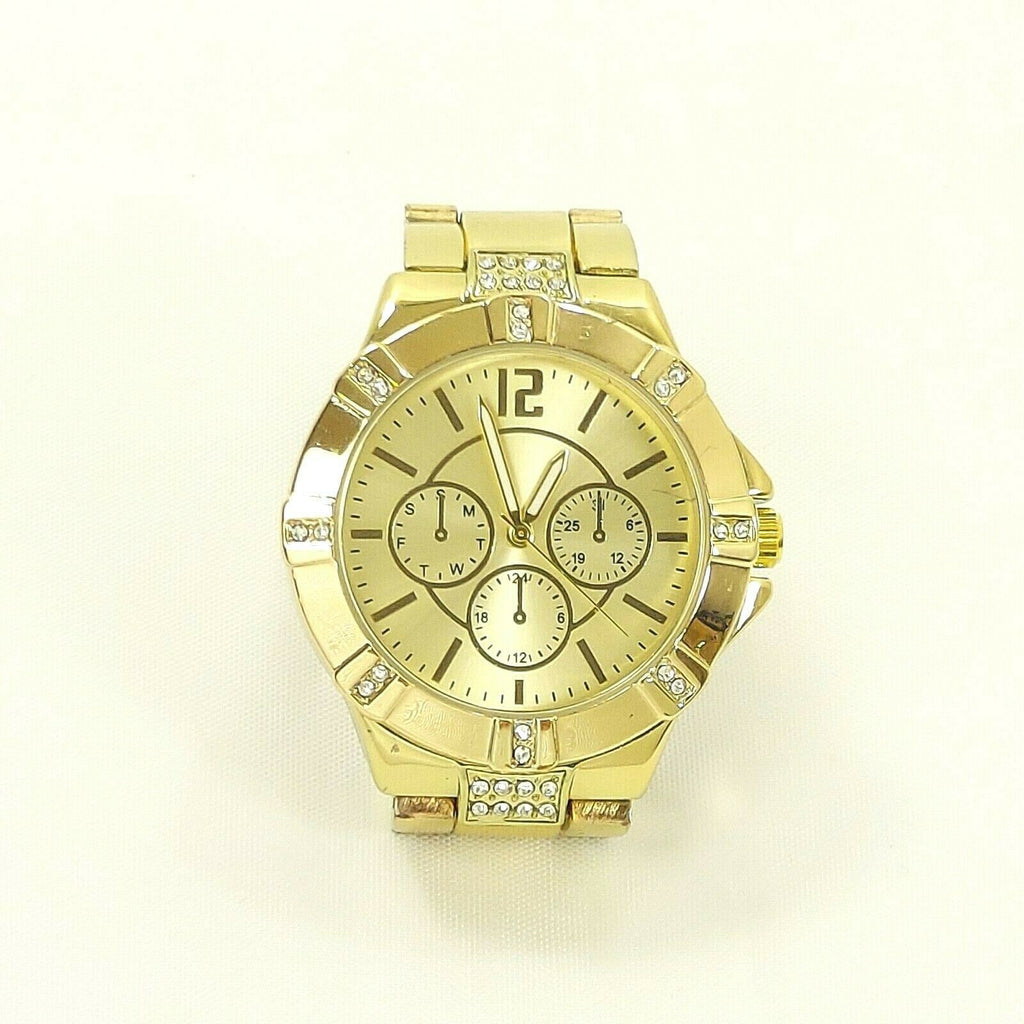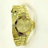 Unisex Gold Tone Color W/Simulated Diamonds Bracelet Jewelry Wrist Watch