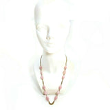 Women Stones Necklace Goldish/Pink Pendant Beads Handmade Chain Trinket Gift Vintage