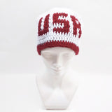 Unisex Handmade 100% Wool Knit Winter Warm USA Beanie Hat Gray/Bordeaux